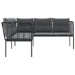 Vrtni kavč - Zunanji kavč z blazinami oblika črke L črno jeklo in tekstilen