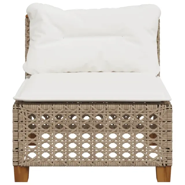 Vrtni kavč - Zunanji kavč brez naslonjal z blazinami bež poli ratan