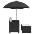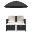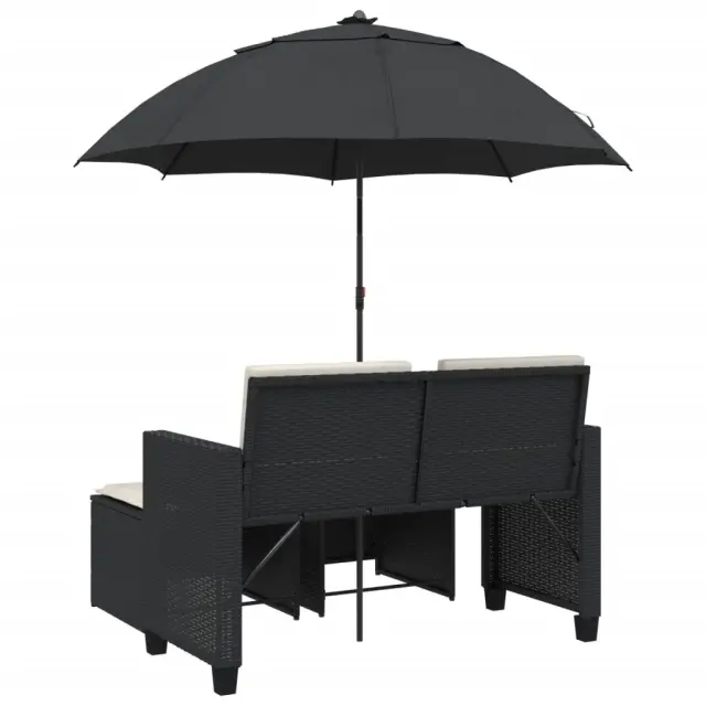 Vrtni kavč - Zunanji kavč dvosed s senčnikom in stolčki črn poli ratan