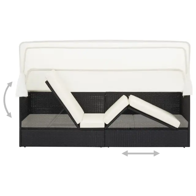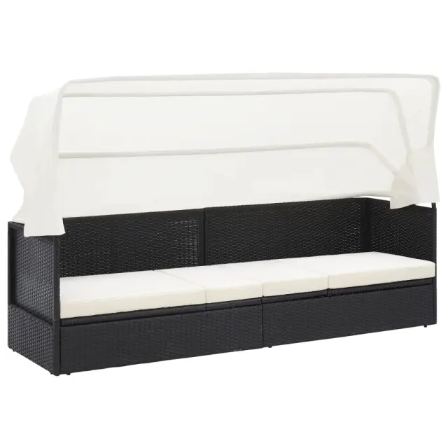 Vrtni kavč - Zunanji kavč s streho črn poli ratan