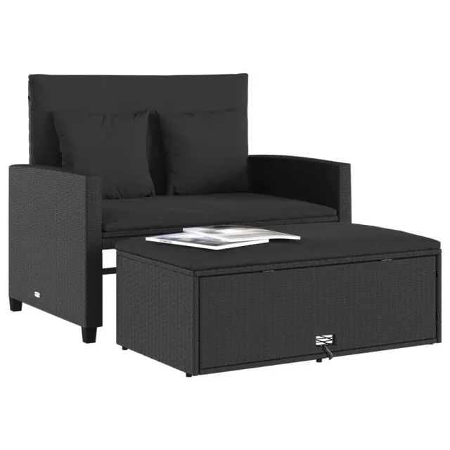 Vrtni kavč - Zunanji kavč dvosed z blazinami črn poli ratan