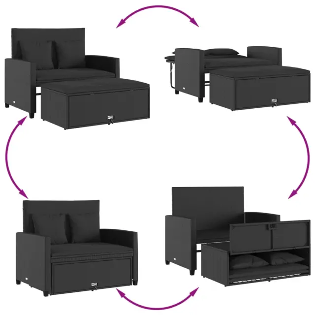 • Vsestranska funkcionalnost: To zunanje pohištvo se lahko uporablja kot dvosedežna klop ali raztegljiv kavč. Z lahkoto jo lahko spremenite v posteljo, tako da nagnete naslonjalo in izpod klopi izvlečete stolček. Zaradi podpornih plošč za naslonjali je postelja stabilnejša.