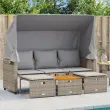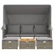 Vrtni kavč - Zunanji kavč trosed s streho in stolčki siv poli ratan