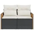 Vrtni kavč - Zunanji kavč dvosed z blazinami črn poli ratan