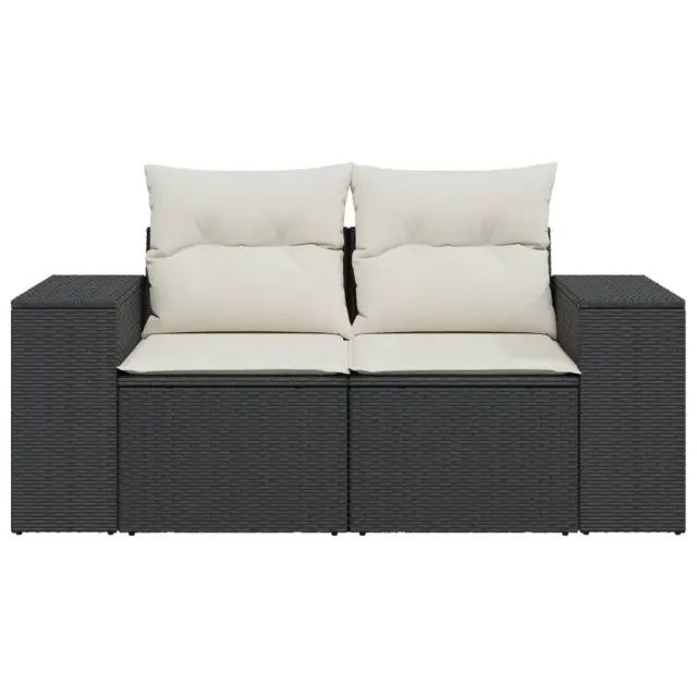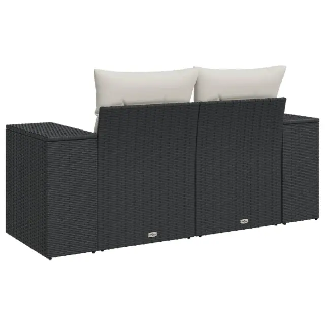 Vrtni kavč - Zunanji kavč dvosed z blazinami črn poli ratan