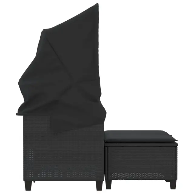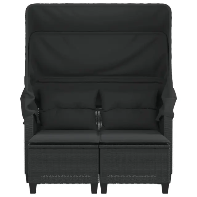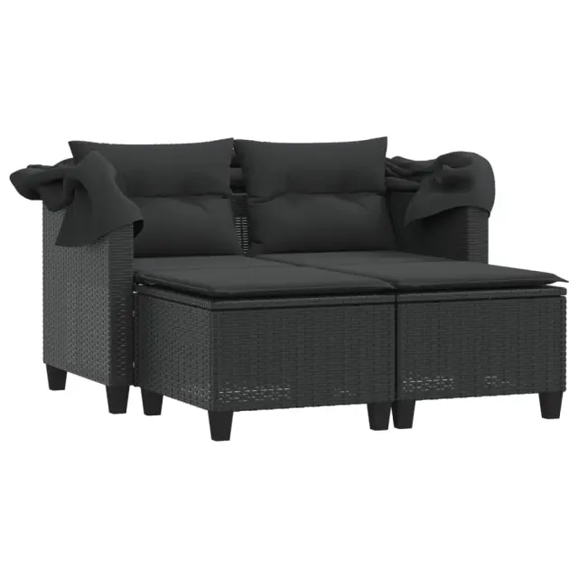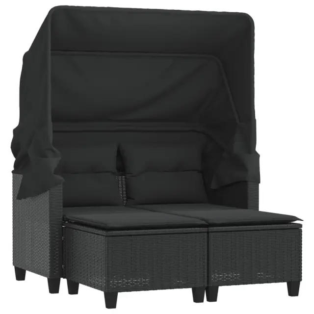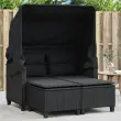Vrtni kavč - Zunanji kavč dvosed s streho in stolčki črn poli ratan