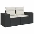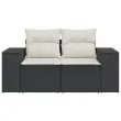 Vrtni kavč - Zunanji kavč dvosed z blazinami črn poli ratan