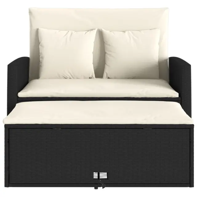 Vrtni kavč - Zunanji kavč dvosed z blazinami črn poli ratan