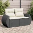 Vrtni kavč - Zunanji kavč dvosed z blazinami črn poli ratan