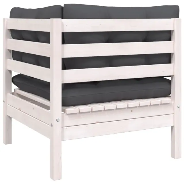 Vrtni kavč - Zunanji kavč dvosed z blazinami bela trdna borovina