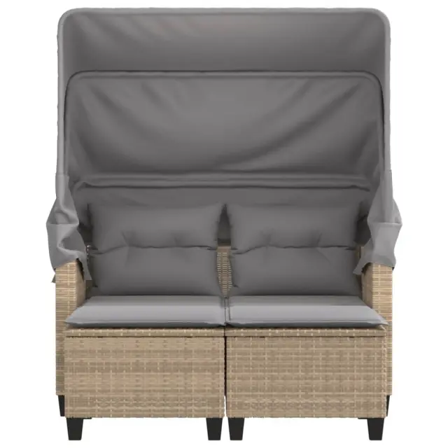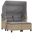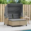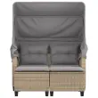 Vrtni kavč - Zunanji kavč dvosed s streho in stolčki bež poli ratan
