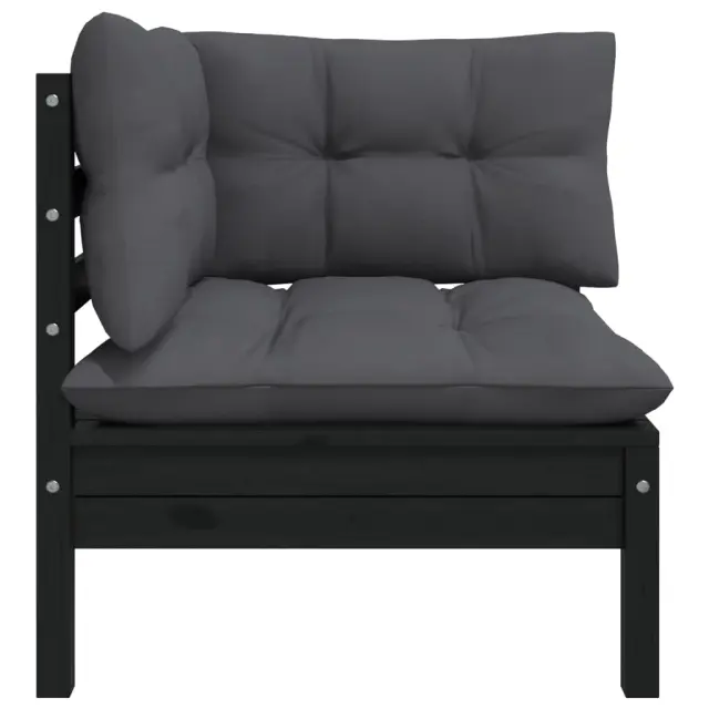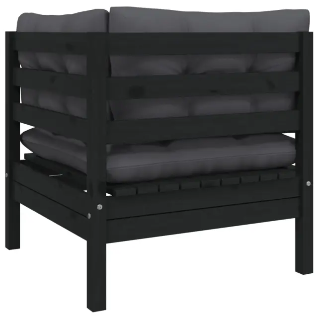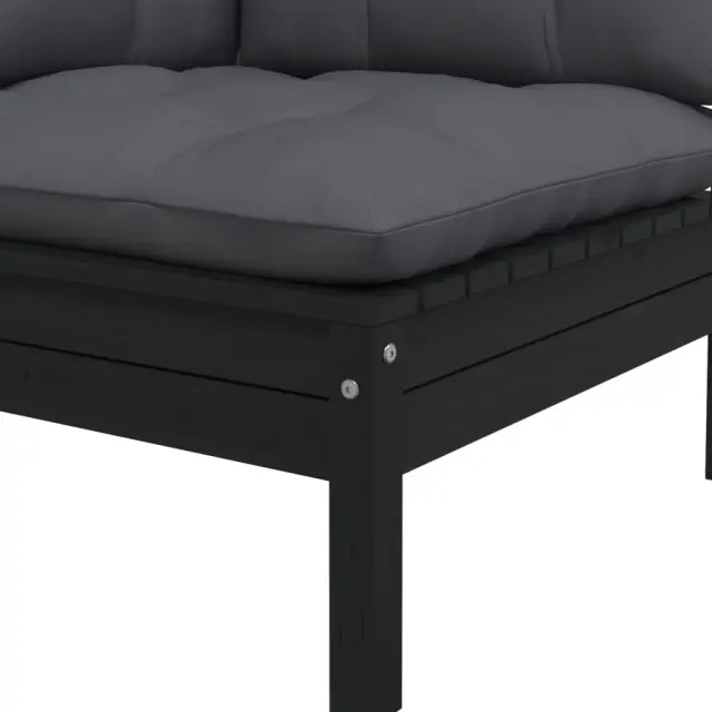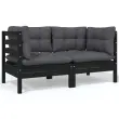 Vrtni kavč - Zunanji kavč dvosed z blazinami črna trdna borovina