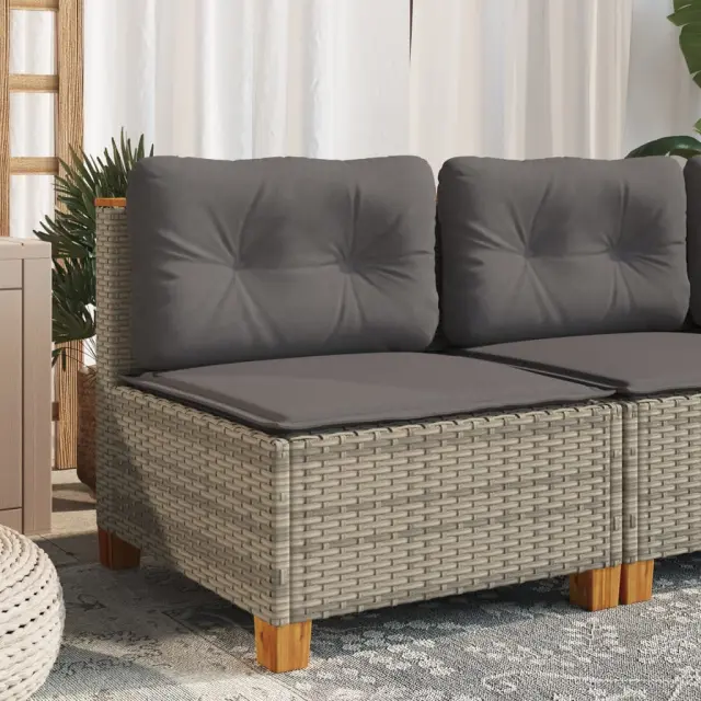 Vrtni kavč - Zunanji kavč brez naslonjal z blazinami siv poli ratan