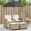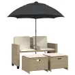 Vrtni kavč - Zunanji kavč dvosed s senčnikom in stolčki bež poli ratan