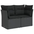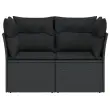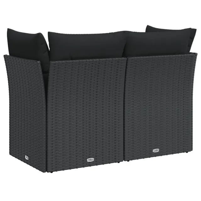 Vrtni kavč - Zunanji kavč dvosed z blazinami črn poli ratan