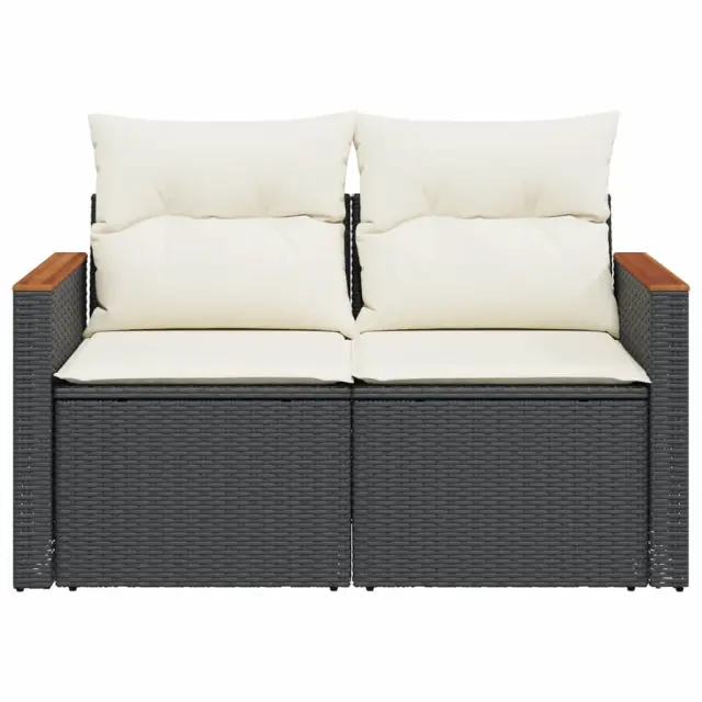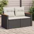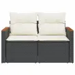 Vrtni kavč - Zunanji kavč dvosed z blazinami črn poli ratan