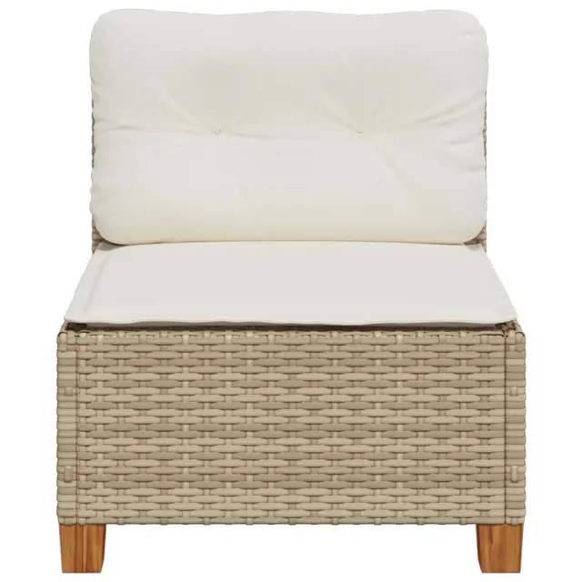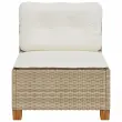 Vrtni kavč - Zunanji kavč brez naslonjal z blazinami bež poli ratan