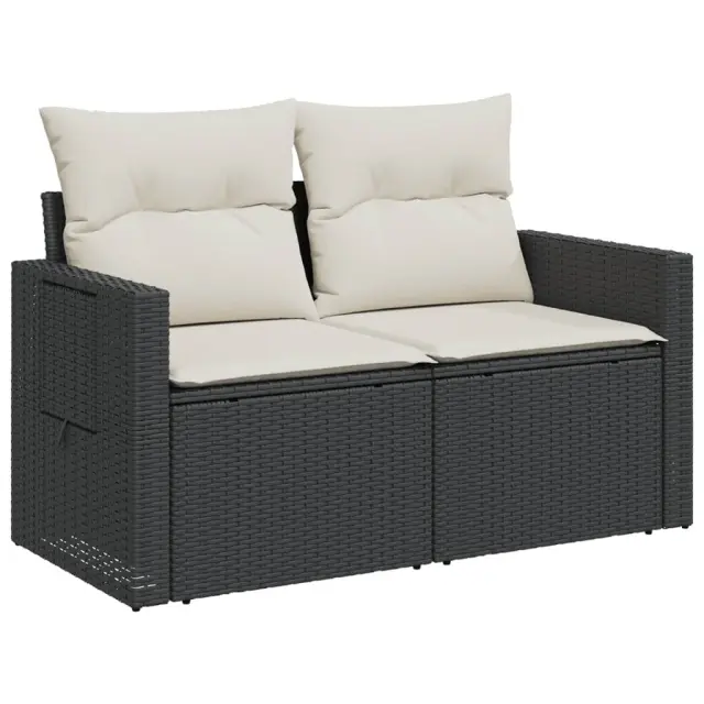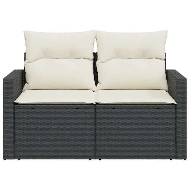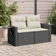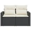 Vrtni kavč - Zunanji kavč dvosed z blazinami črn poli ratan