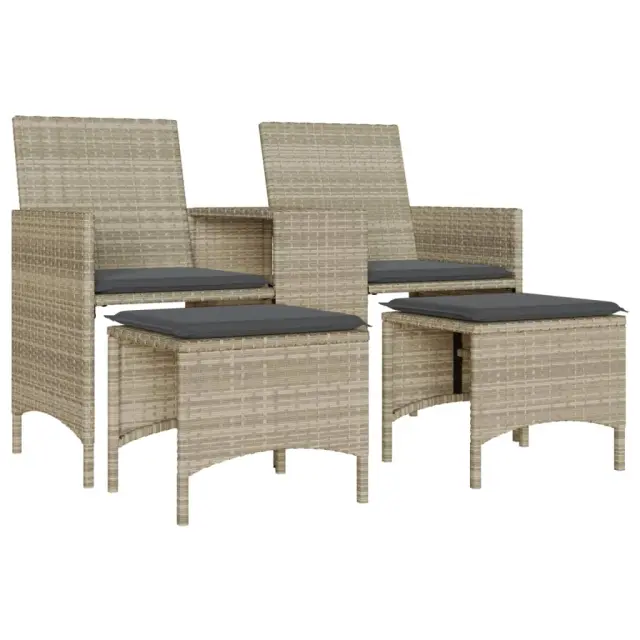 Vrtni kavč - Zunanji kavč dvosed z mizico in stolčki svetlo siv poli ratan