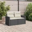 Vrtni kavč - Zunanji kavč dvosed z blazinami črn poli ratan