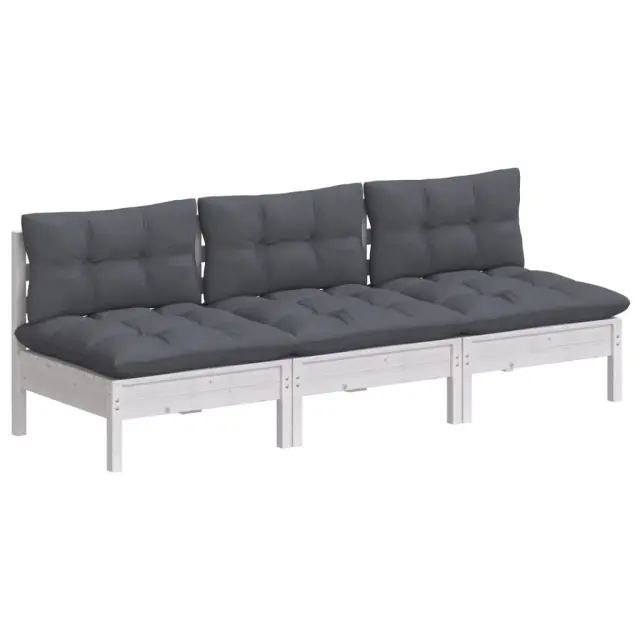 Vrtni kavč - Zunanji kavč trosed z antracitnimi blazinami trdna borovina