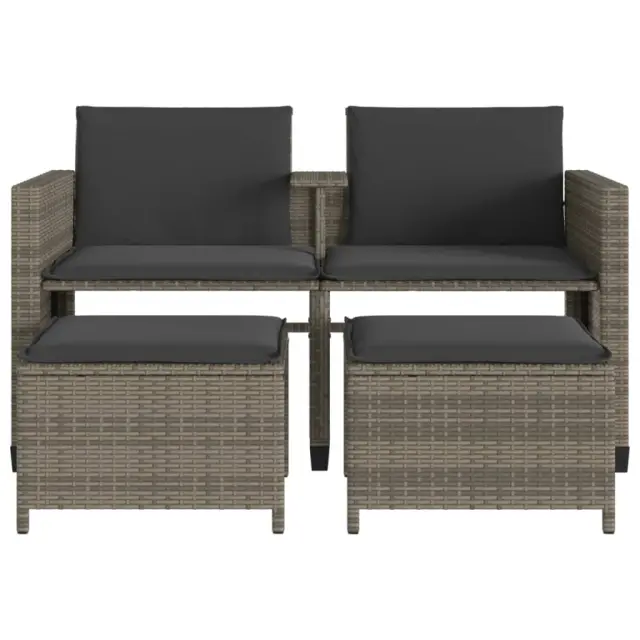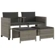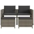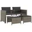 Vrtni kavč - Zunanji kavč dvosed z mizico in stolčki siv poli ratan