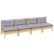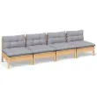 Vrtni kavč - Zunanji kavč štirised s sivimi blazinami trdna borovina