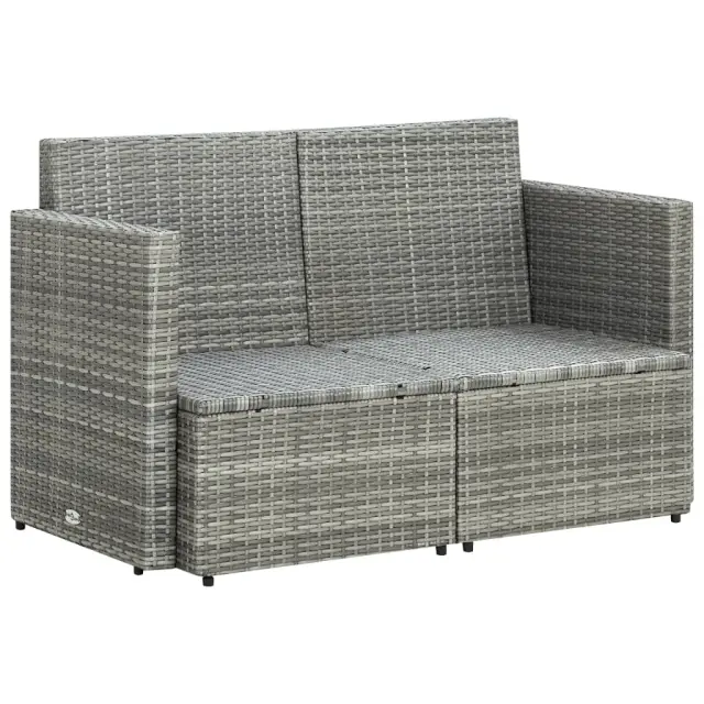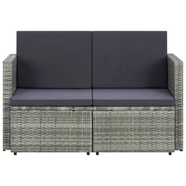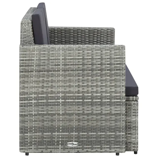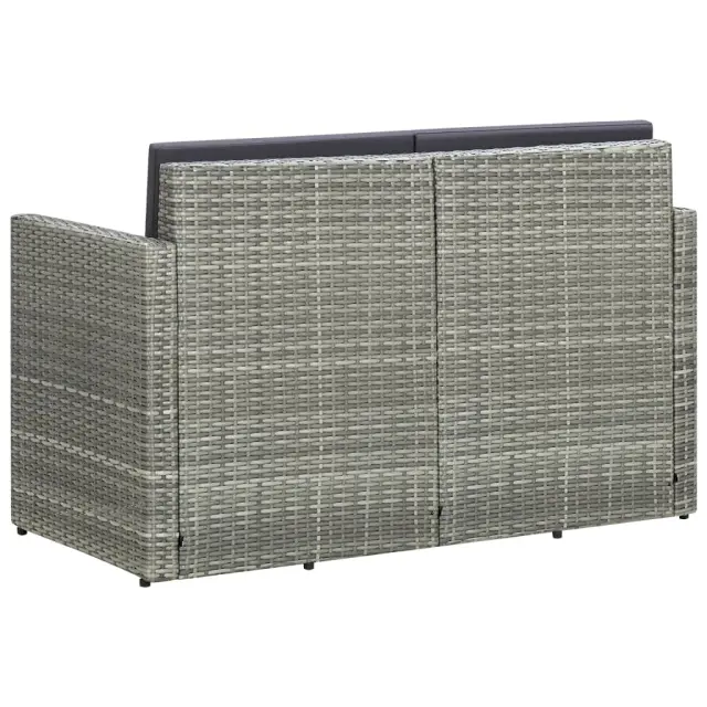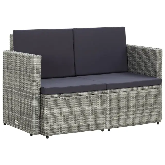 Vrtni kavč - Zunanji kavč dvosed z blazinami siv poli ratan