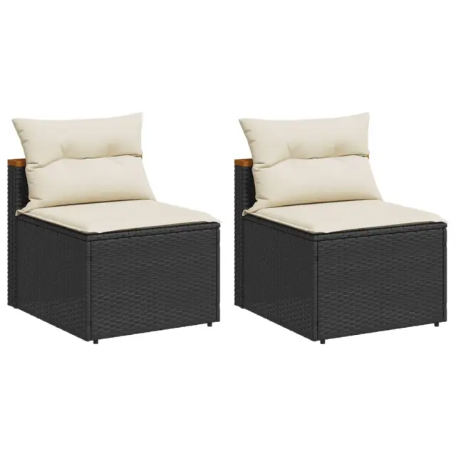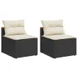 Vrtni kavč - Zunanji kavč brez naslonjal z blazinami 2 kosa črn poli ratan