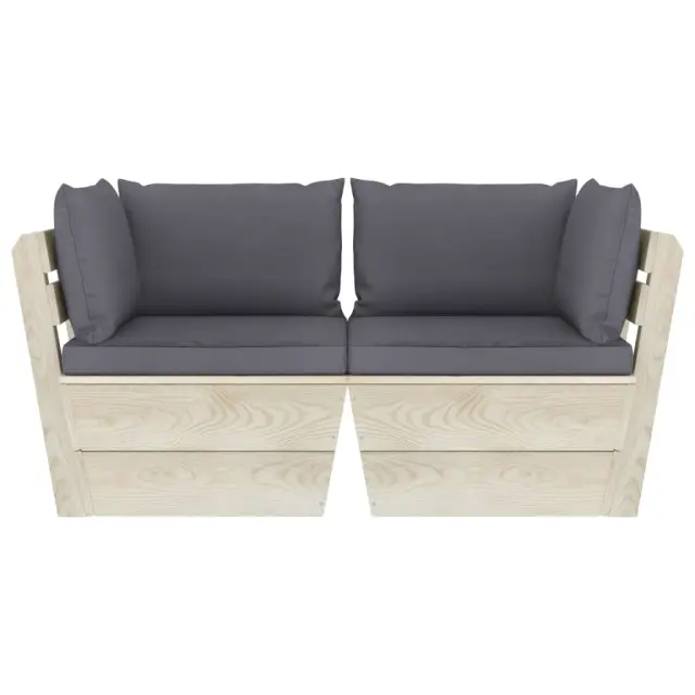 Vrtni kavč - Zunanji kavč dvosed iz palet z blazinami smrekovina