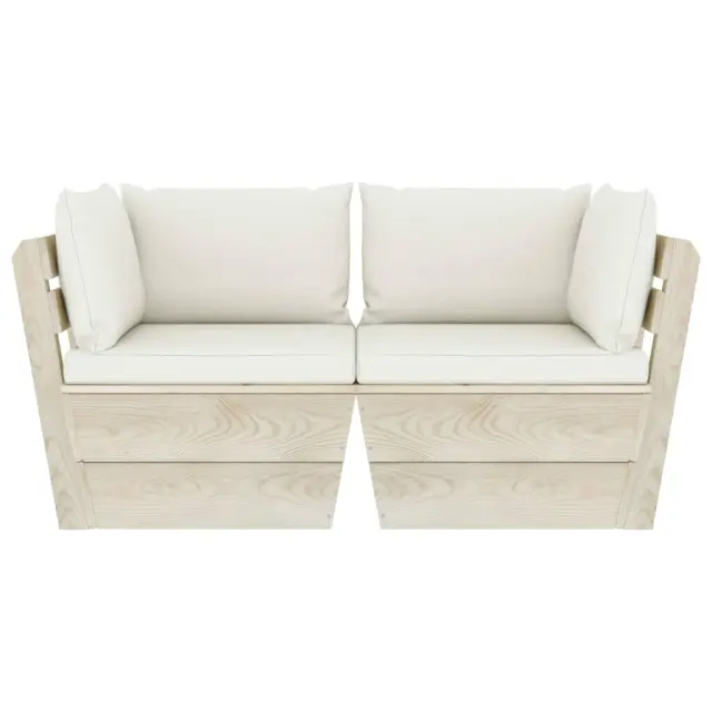 Vrtni kavč - Zunanji kavč dvosed iz palet z blazinami smrekovina