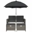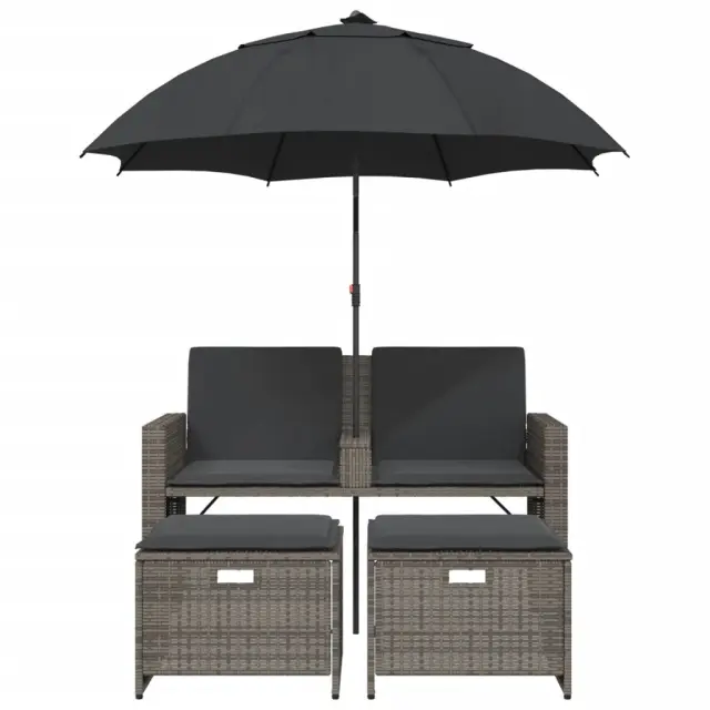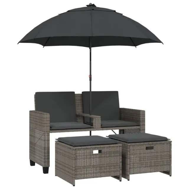Ta vrtni kavč s senčnikom in stolčki za noge je popoln dodatek za vaše dvorišče, teraso ali verando, saj zagotavlja udoben in privlačen prostor za klepet z družino in prijatelji ali preprosto za sprostitev in uživanje na prostem.
