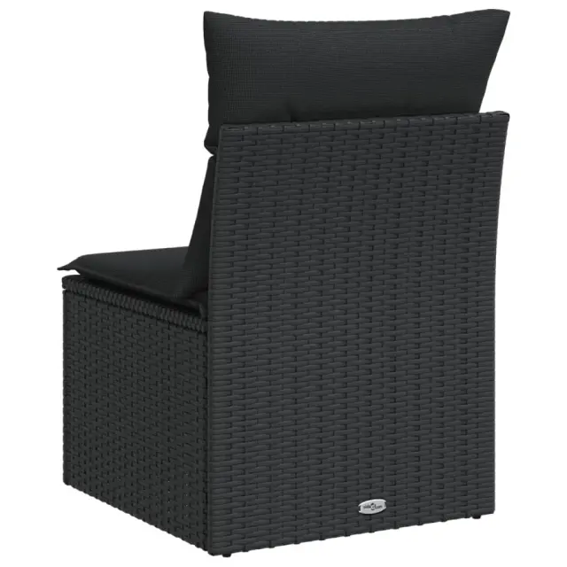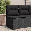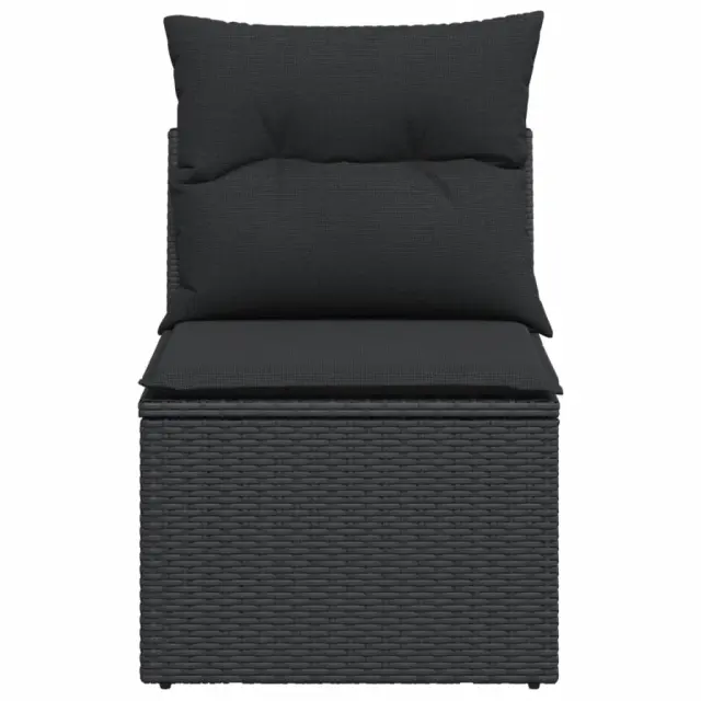 Vrtni kavč - Zunanji kavč brez naslonjal z blazinami črn poli ratan
