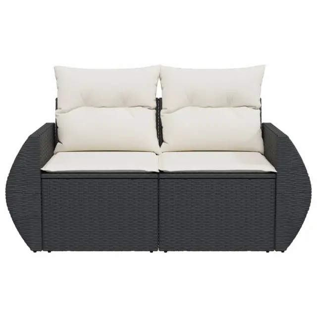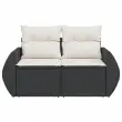 Vrtni kavč - Zunanji kavč dvosed z blazinami črn poli ratan