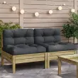 Vrtni kavč - Zunanji kavč brez naslonjal z blazinami 2 kosa impreg. borovina