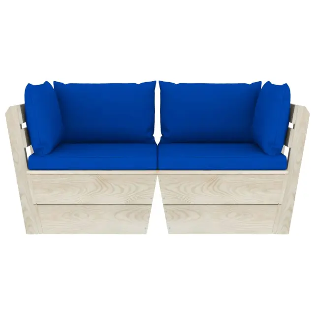 Vrtni kavč - Zunanji kavč dvosed iz palet z blazinami smrekovina