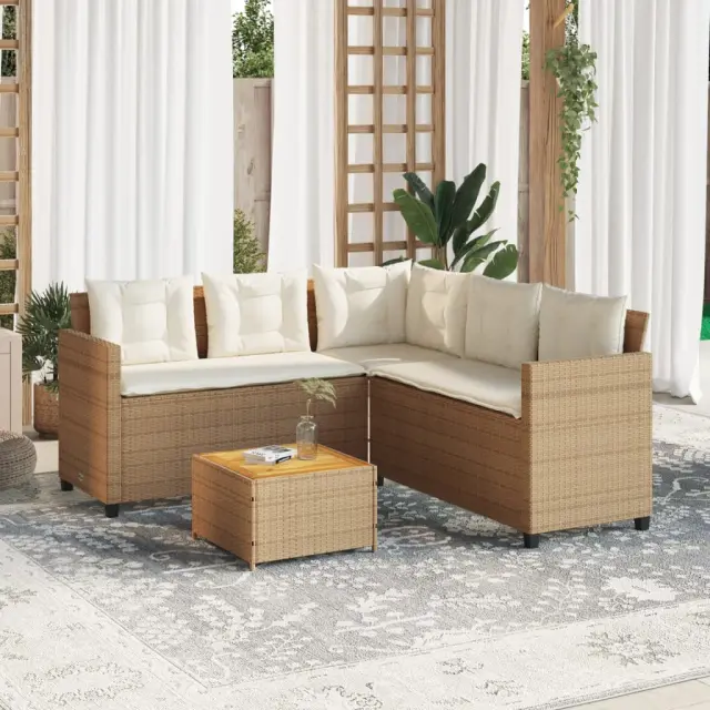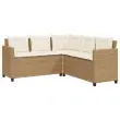 Vrtni kavč - Zunanji kavč z mizo in blazinami v obliki črke L bež poli ratan