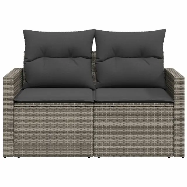 Vrtni kavč - Zunanji kavč z blazinami 2-sedežni siv poli ratan