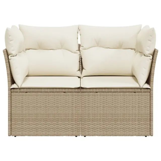 Vrtni kavč - Zunanji kavč z blazinami 2-sedežni bež poli ratan