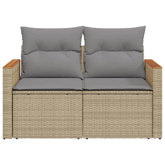 Vrtni kavč - Zunanji kavč z blazinami 2-sedežni bež poli ratan