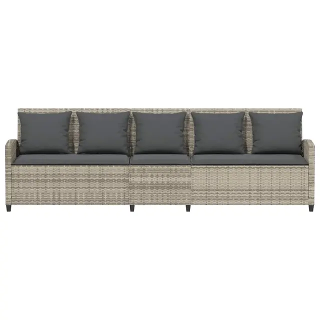 Vrtni kavč - Zunanji kavč z blazinami 5-sedežni svetlo siv poli ratan