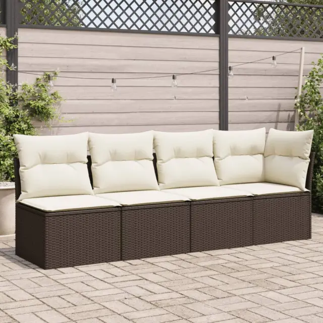 Vrtni kavč - Zunanji kavč z blazinami štirised rjav poli ratan