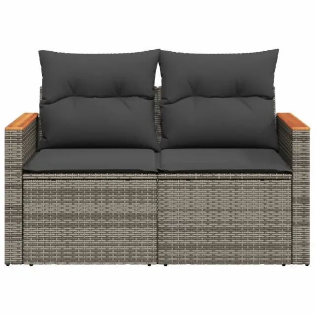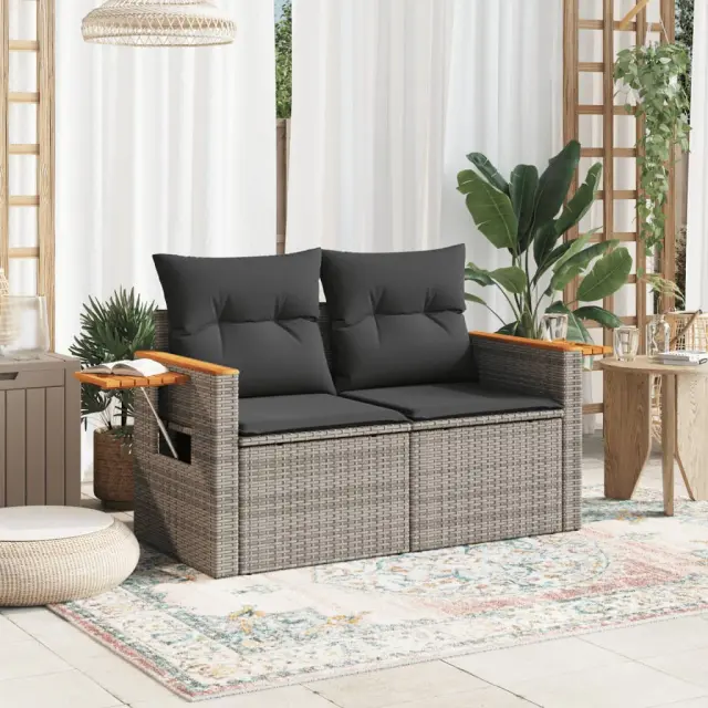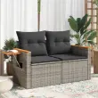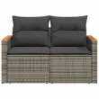Vrtni kavč - Zunanji kavč z blazinami 2-sedežni siv poli ratan