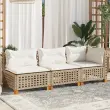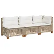 Vrtni kavč - Zunanji kavč z blazinami 3-sedežni bež poli ratan