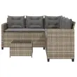 Vrtni kavč - Zunanji kavč z mizo in blazinami v obliki črke L siv poli ratan