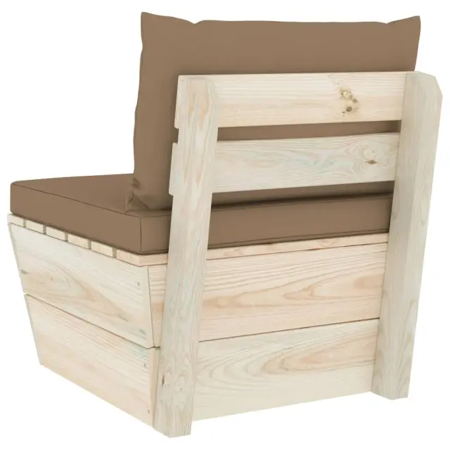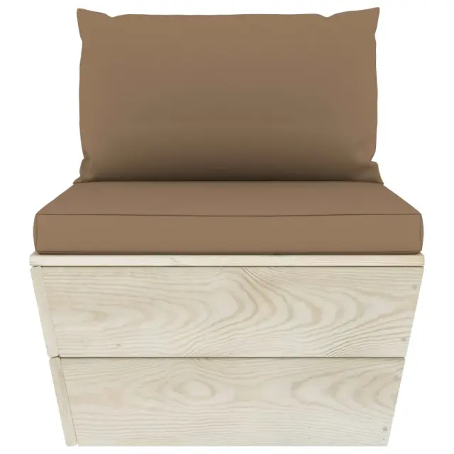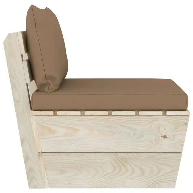 Zunanji sedež je izdelan iz impregnirane smrekovine, zato je trpežen in stabilen. Ta srednji kavč ima trdno konstrukcijo ter ne potrebuje veliko vzdrževanja. Zahvaljujoč oblogi iz 100 % poliestra in debeli podlogi so blazine iz palet mehke in zelo udobne. Ta sedež je idealen za družinske filmske večere, igranje video iger in uživanje v lepem vremenu na terasi. Ta sedež za teraso je modularen, zato je popolnoma fleksibilen in preprost za premikanje naokrog. Kombinirate ga lahko z drugimi modularnimi segmenti ter tako ustvarite vrtno sedežno garnituro po svojem okusu!