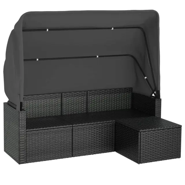 Vrtni kavč - Zunanji kavč trosed s streho in stolčkom za noge črn poli ratan