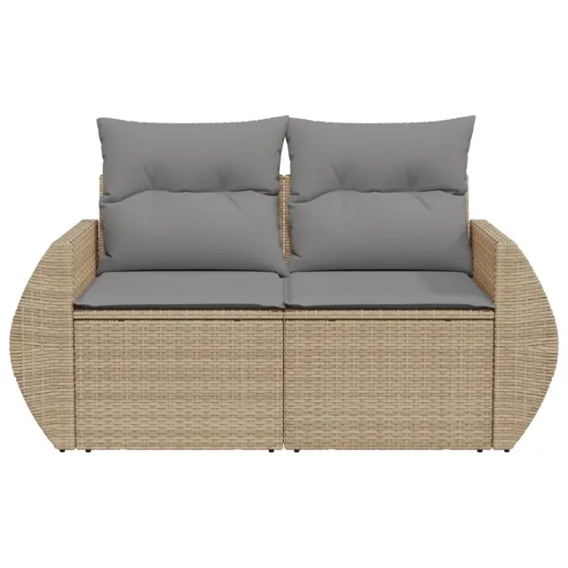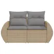 Vrtni kavč - Zunanji kavč z blazinami 2-sedežni bež poli ratan