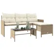 Vrtni kavč - Zunanji kavč z mizo in blazinami v obliki črke L bež poli ratan