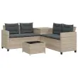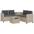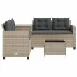 Vrtni kavč - Zunanji kavč z mizo in blazinami v obliki črke L siv poli ratan